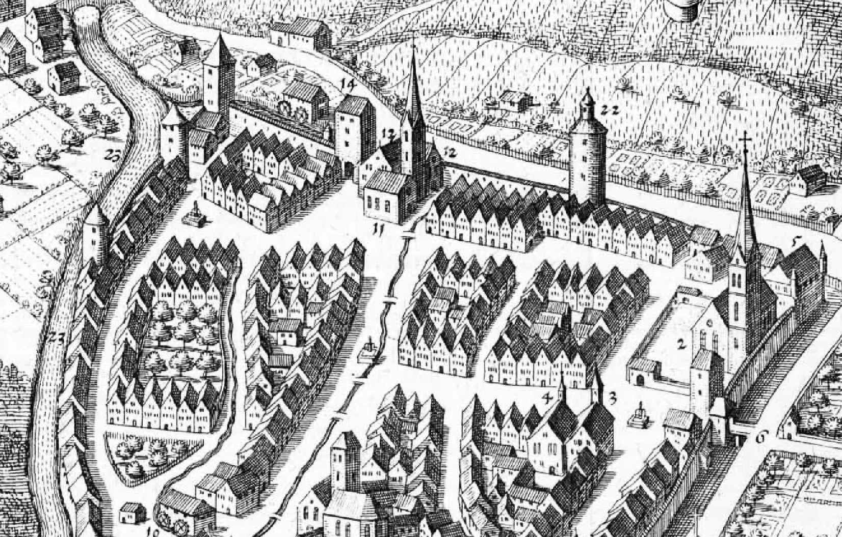 In der Frühzeit der Stadt Feldkirch entstand als Zentrum die Marktstraße mit einer Parallelstraße sowie zwei Querstraßen, umgeben mit einer Mauer. Westlich, wo heute Kreuzgasse und Montfortgasse aufeinandertreffen, befand sich der Vorgänger vom Churer Tor. Ab 1379 wurde der Raum bis zur Ill erschlossen und die „Vorstadt“ mit einer Mauer umgeben. Nordwestlich, an seiner heutigen Stellen, bot nun das Churer Tor Einlass in die Stadt.